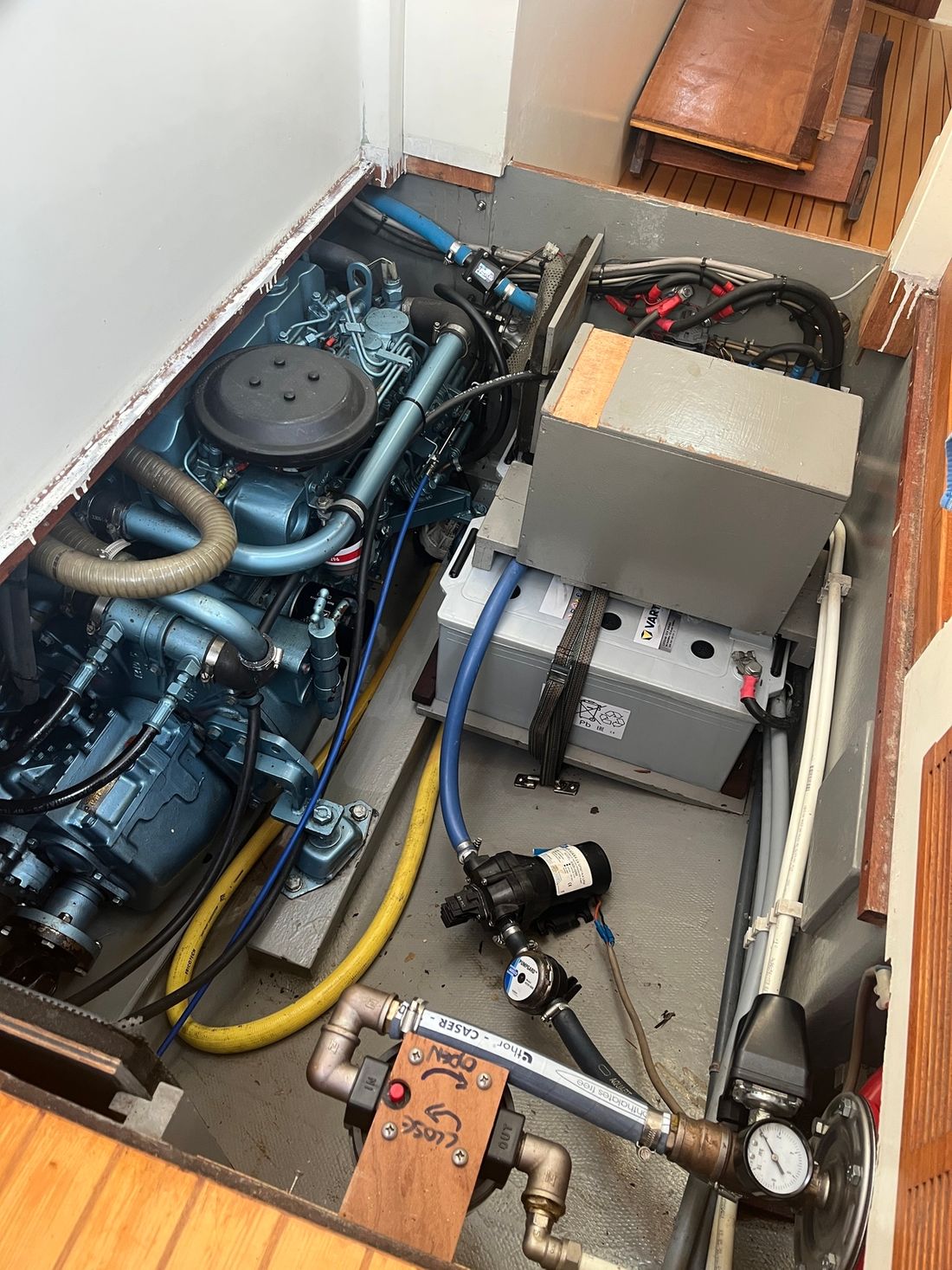 Motorisatie Aantal identieke motoren 1 Start type elektrisch Hoofdmotor Type binnenboord Merk Perkins Bouwjaar 2000 Aantal cilinders 4 Vermogen 65 pk Urenteller Draaiuren 1385 Brandstof diesel Aandrijving Overbrenging schroefas Voortstuwing schroef Koeling indirect Tank Brandstoftank aantal Opmerkingen Brandstoftank aantal 1x 270, 1x 300 ltr. Aantal 2 Totale inhoud brandstoftank(s) 570 liter Meetinstrumenten motor Brandstoftankmeter Toerenteller Boeg- en hekschroef Boegschroef hydraulisch Elektriciteit Accu Acculader Dynamo Opmerkingen Dynamo 2x dynamo Walstroom Walstroomkabel Zonnepaneel 12V 220V -
