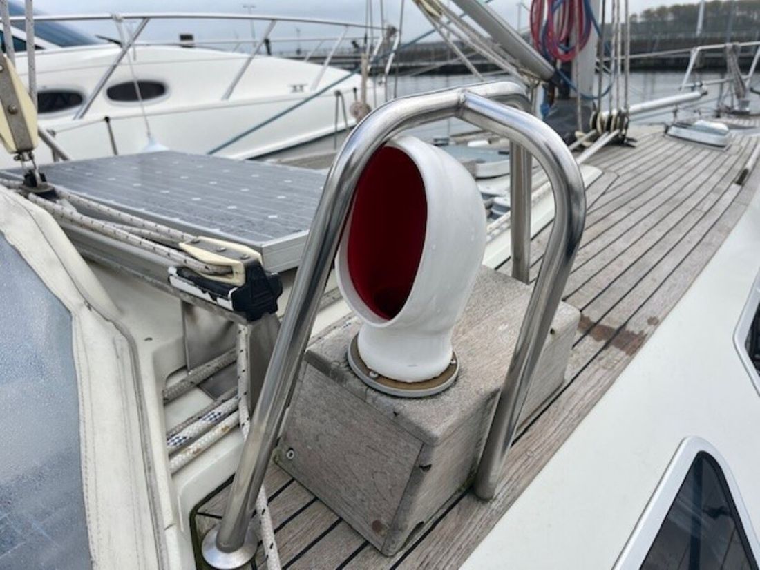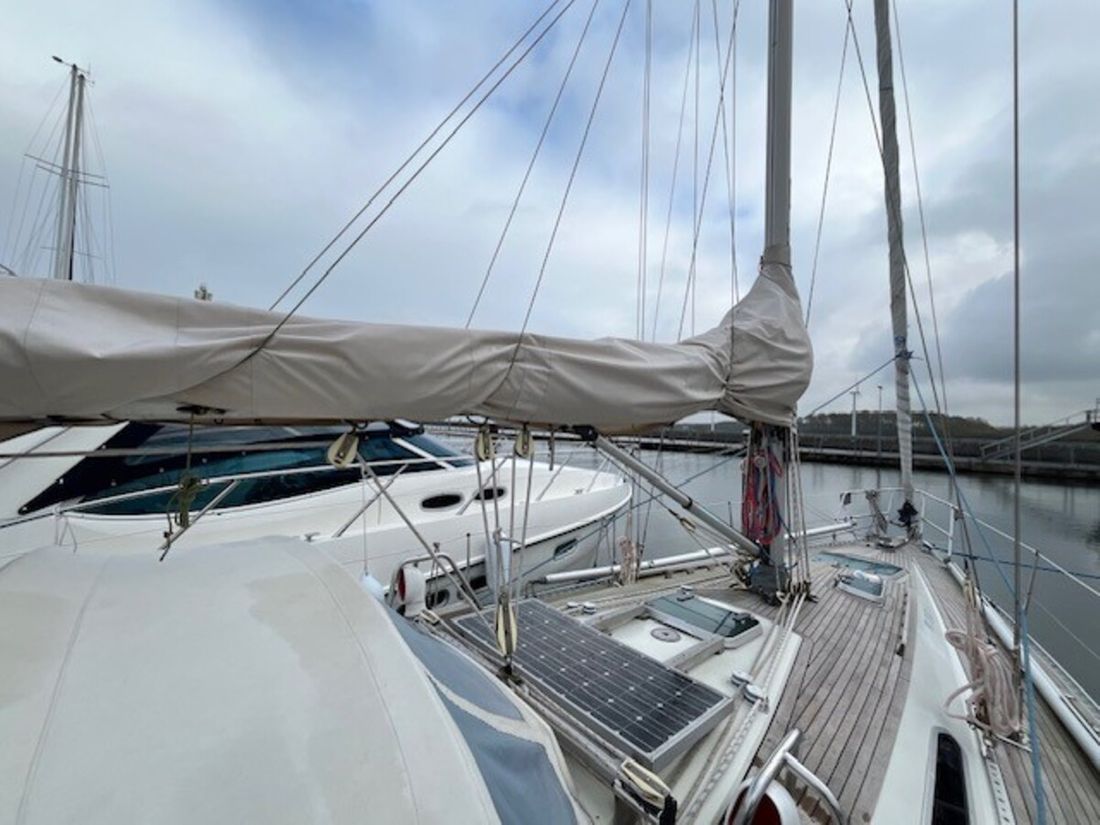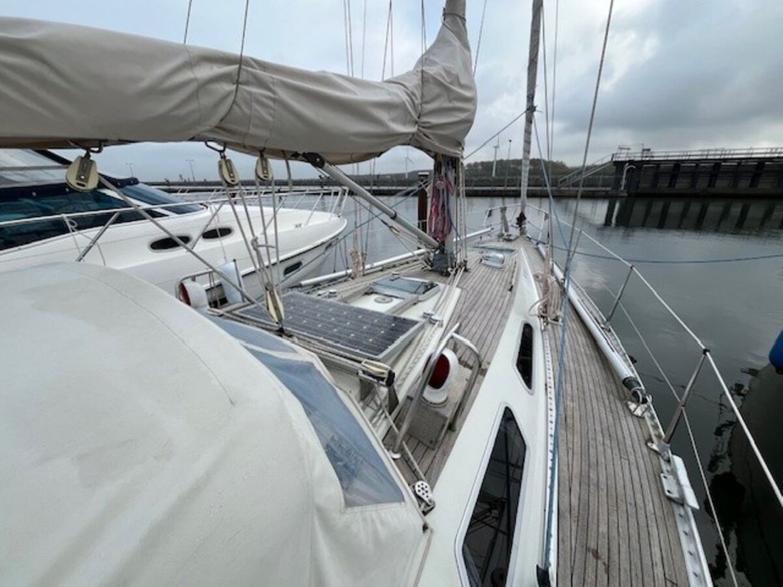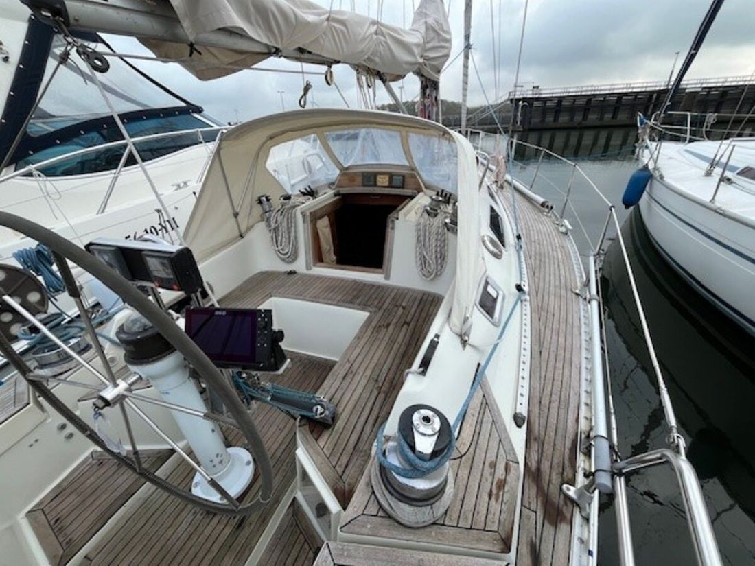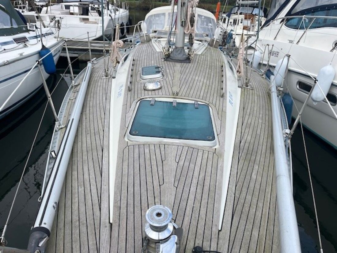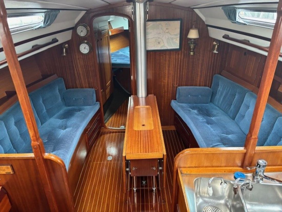 Nieuw geleverd Ontwerper Peter Norlin, Östmann Werf Sweden Yachts Bouwnummer 101 Romp, dek en opbouw Rompvorm rondspant Rompkleur wit Dek en opbouw kleur wit Dek en opbouw materiaal polyester Kuip achterkuip Achterkajuit (AK) Opbouw vorm, materiaal Teak vernieuwd in 2014 Afmetingen en gewichten Lengte waterlijn 851 cm Waterverplaatsing 5715 cm Ballast 2350 cm Besturing en driftbeperking Besturing stuurwiel Plek besturing buiten Roer enkel Kiel/zwaard vaste kiel -