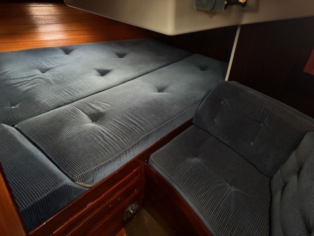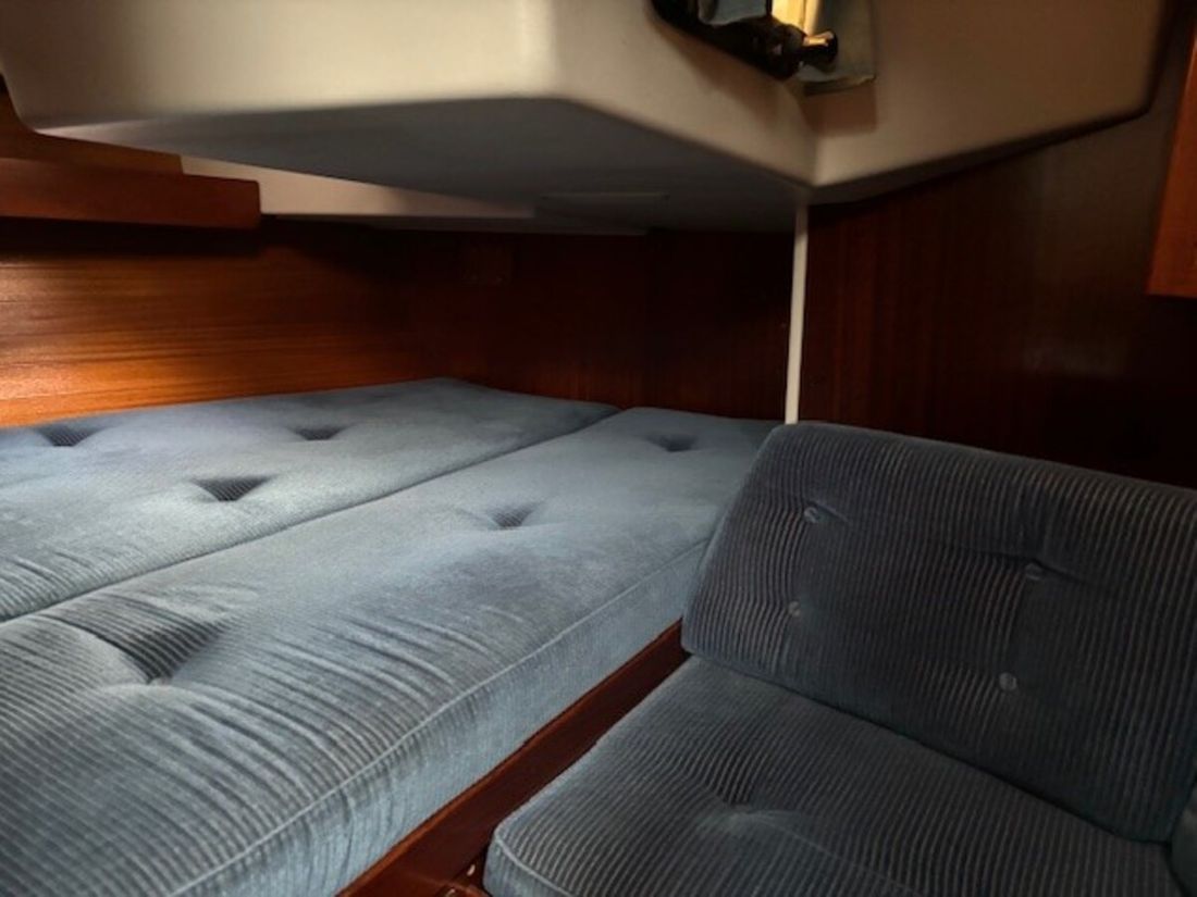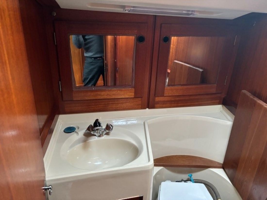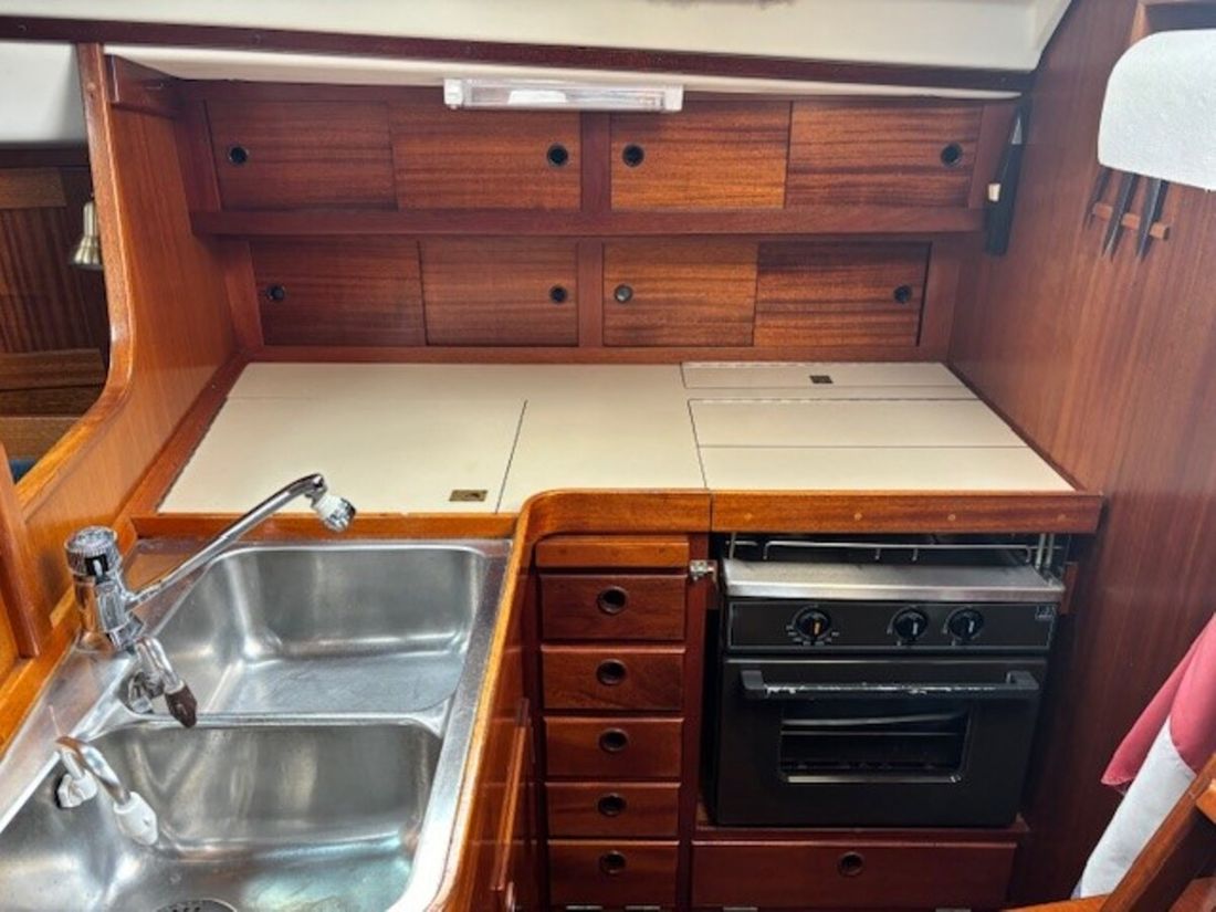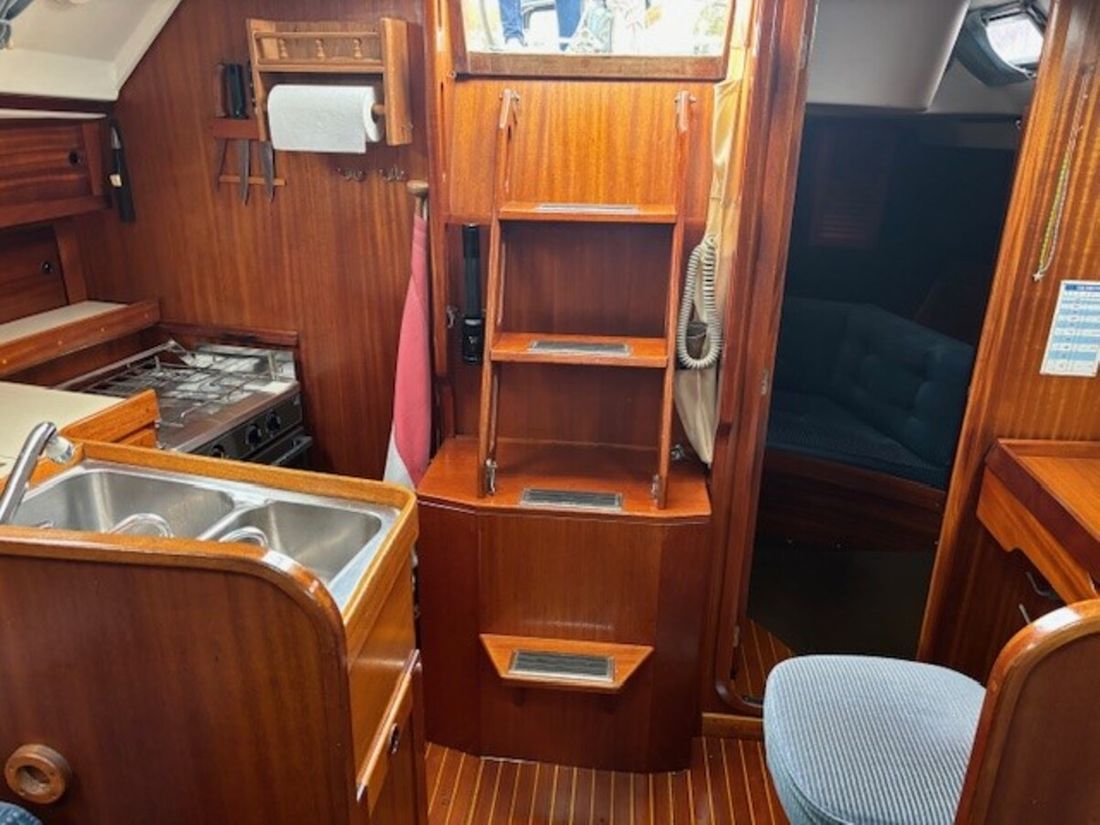 Het interieur is ruim en luxe afgewerkt met hoogwaardig houtwerk, een gezellige salon, twee comfortabele hutten en een goed uitgeruste kombuis met dubbele spoelbak. Dankzij de solide constructie en tijdloze lijnen is deze Sweden Yacht een echte blikvanger op het water.