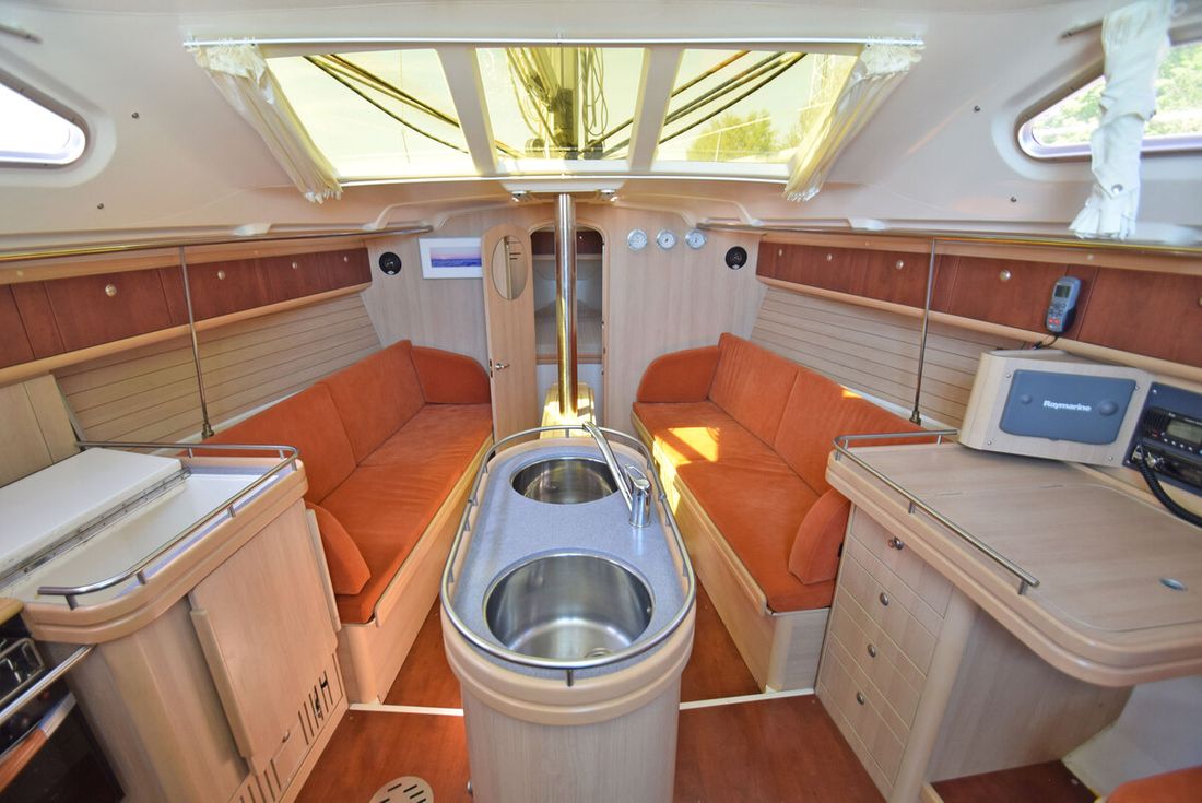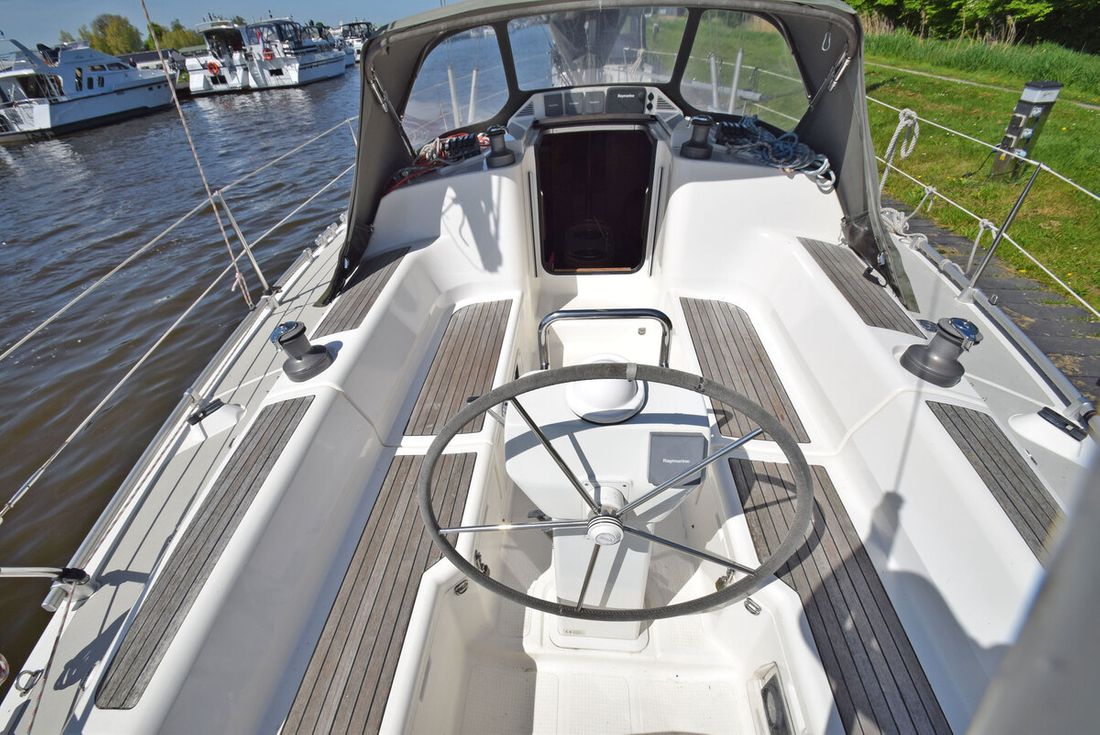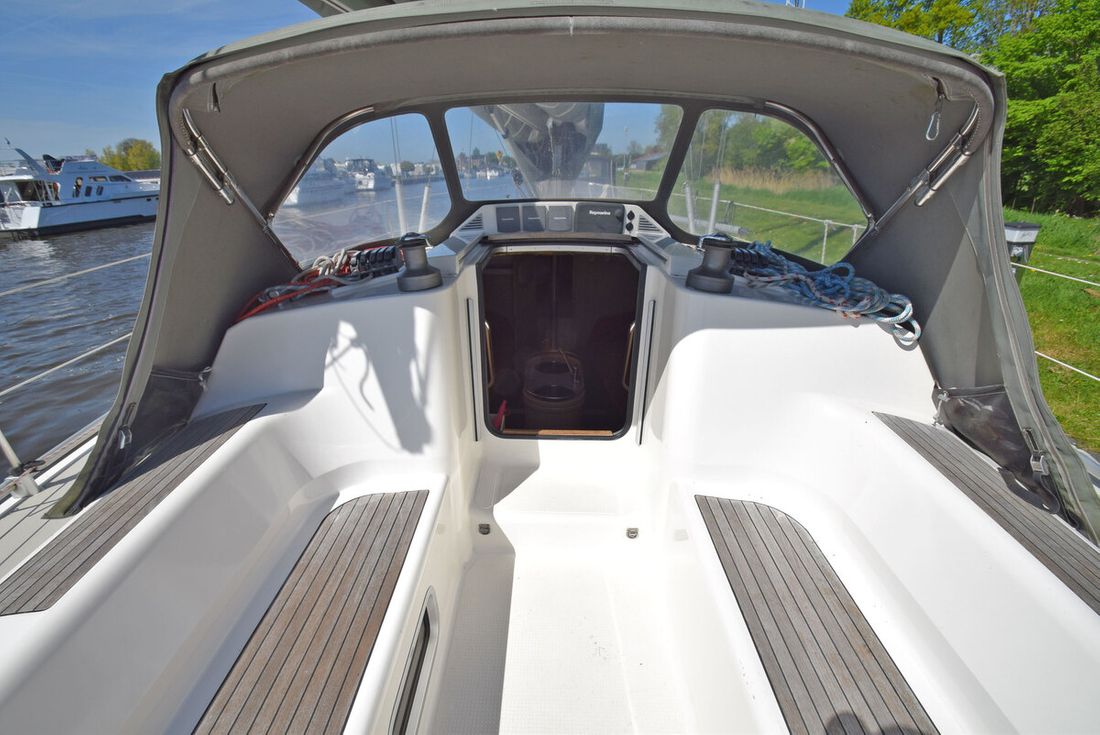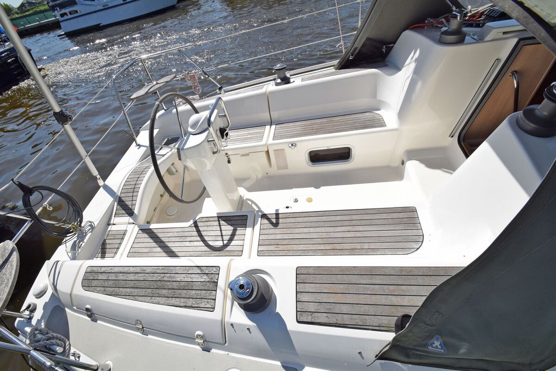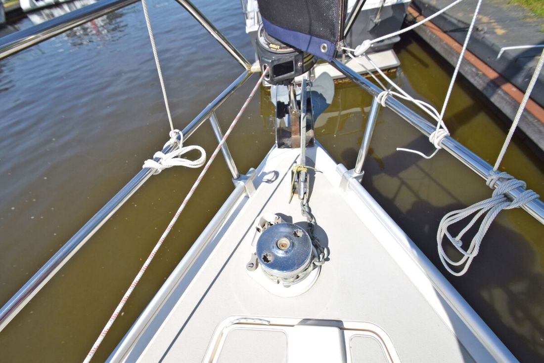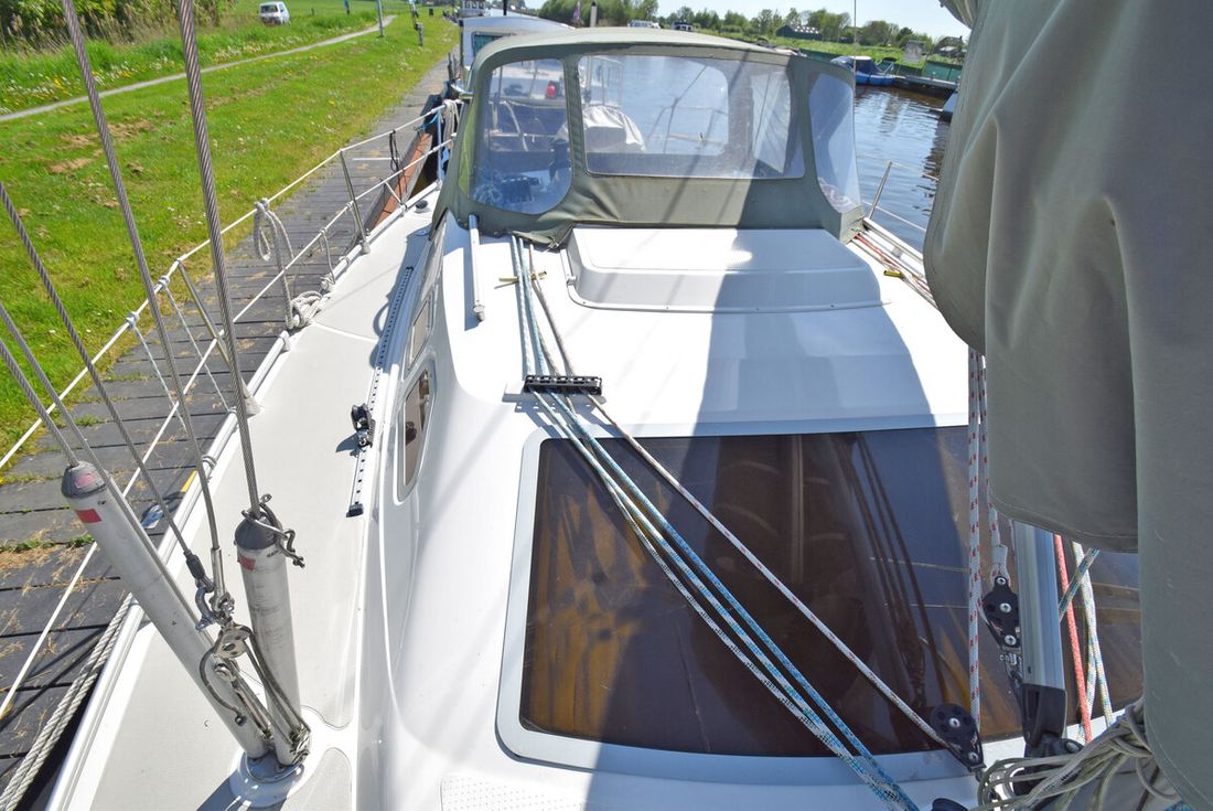 Doorvaarthoogte 17.25 m, 9/10 getuigd, grootzeil 2014 dacron, maindrop systeem, rolfokinstallatie, rolgenua 110% met witte UV-strook 2014, rolfokhoes, RVS verstaging, wegneembare 2e voorstag, buiskap met een RVS frame en een met leer beklede grijpbeugel en 2 RVS handgrepen aan de buitenkant, kuiptent tot aan het stuurwiel, stuurwielhoes, 2 maal Lewmar lieren ST44 en 2 maal Lewmar lieren ST40, In de kuip is een wegneembare overloop gemonteerd. De grootschoot is voorzien van een fine-tune vertraging.